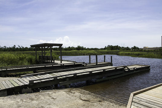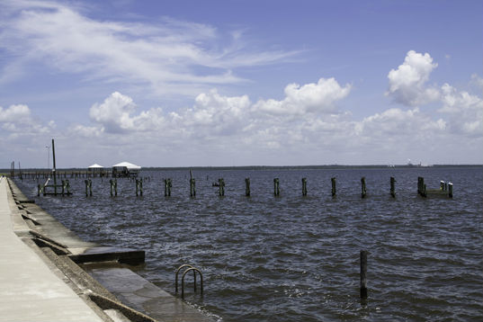 Cedar Point Boat Launch is on the Bay of St Louis at the north end of North Beach Boulevard. This site has seawall on one side and marsh on the other. It is worth a visit in winter particularly when bad weather over the Mississippi Sound forces some birds to seek more sheltered waters. Scan the waters for loons, grebes, sea ducks and foraging flocks of gulls. A few Ospreys and American Bald Eagles are usually present, and on a few occasions a Peregrine Falcon has wintered. Flocks of White Pelicans are also fairly frequent. The marsh usually has a few wintering Nelson’s Sparrows. Best time to look for them is during very low tides when they forage on the exposed mud at the base of the grass beds.