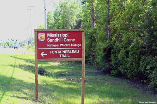 Fontainebleau Nature Trail is an extension of the Mississippi Sandhill Crane National Wildlife Refuge. It is a beautifully maintained trail with a short (0.75 mile) and long (~1.5 mile) loop that takes one through a mix of habitats, including southern mixed hardwood forest, a regenerating longleaf pine forest, wet pine savannah, bayhead swamp, and tidal marsh and bayou. Along the way are several observation platforms overlooking Davis Bayou and its associated marsh. Use them to watch for various waterbirds. In the forested portions, you can expect a wide variety of common woodland birds, including Brown-headed Nuthatch that nest here. Mississippi Sandhill Cranes frequently fly overhead or can be heard calling from nearby foraging grounds.