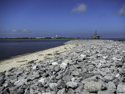 of a quick visit in migration or winter. There is an excellent view of the Mississippi Sound and a good stretch of salt water marsh on the north side. This site also overlooks the mouth of the east channel of the Pascagoula River. Any spot with fishing activity is bound to attract gulls, including an occasional rarity. On the south side there are rock jetties where American Oystercatcher and other shorebirds can be found in season. Watch for waterbirds in the river and the adjacent open water of the sound.